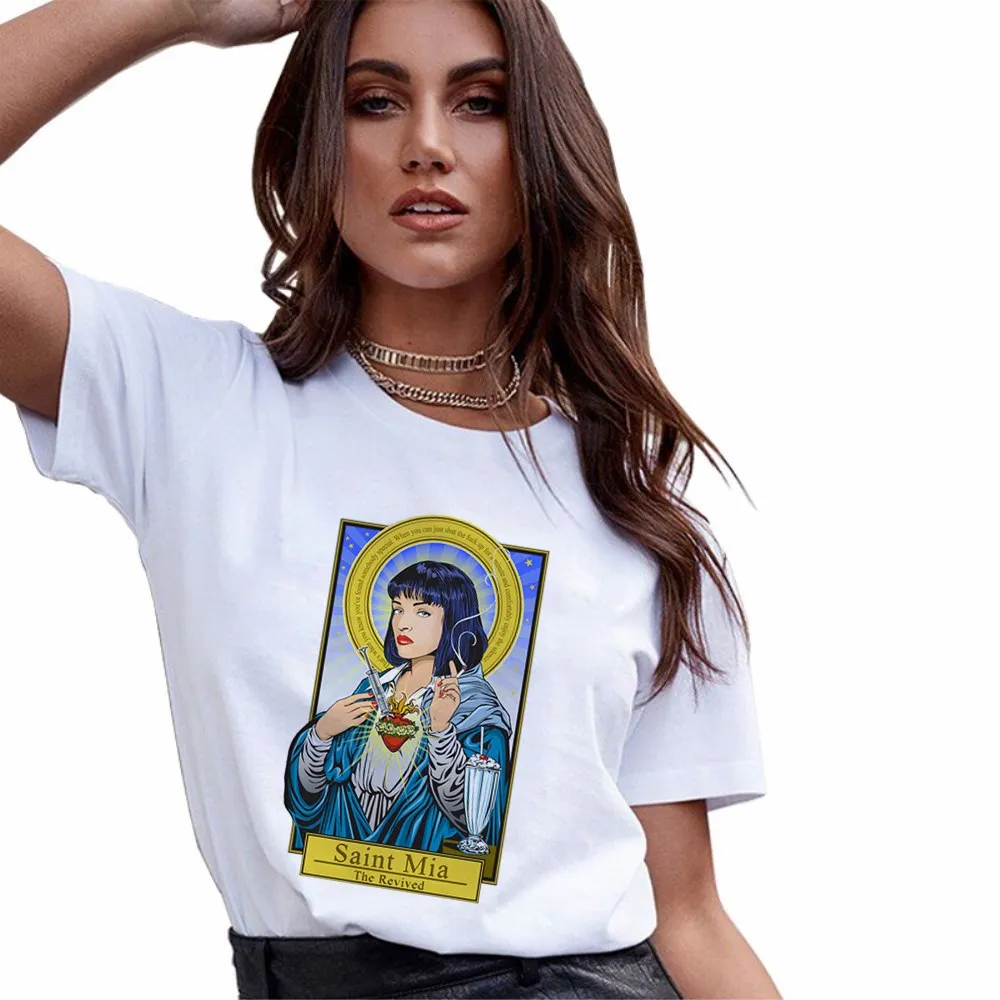 Home > Women T-shirt > Fashion Pulp Fiction Harajuku Women Clothes 2019 Summer Short Sleeve Chemisier Femme Womens Shirts Harajuku Gothic