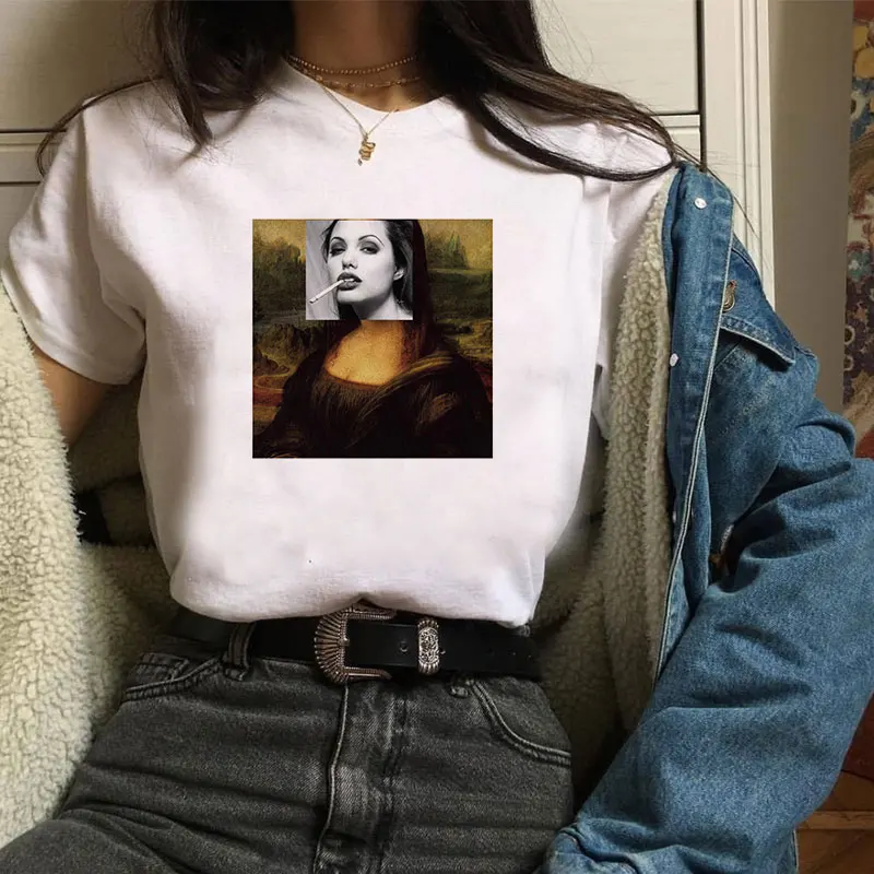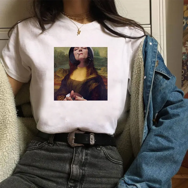 Home > Women T-shirt > Mona Lisa Harajuku Spoof Aesthetics Tshirt Print Short Sleeve Tops Tees Fashion Casual Couple T Shirt Ladies Camiseta Mujer