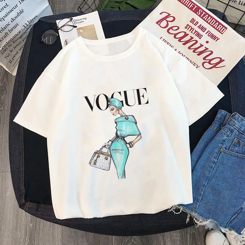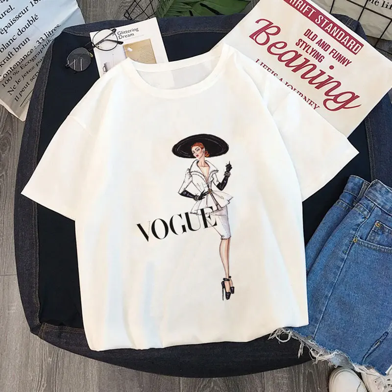 Home > Women T-shirt > Summer Women Fashion T Shirt VOGUE Beauty Elegant Posture Harajuku Short Sleeve O-Neck Tops Tees Female Casual Ladies T-Shirt