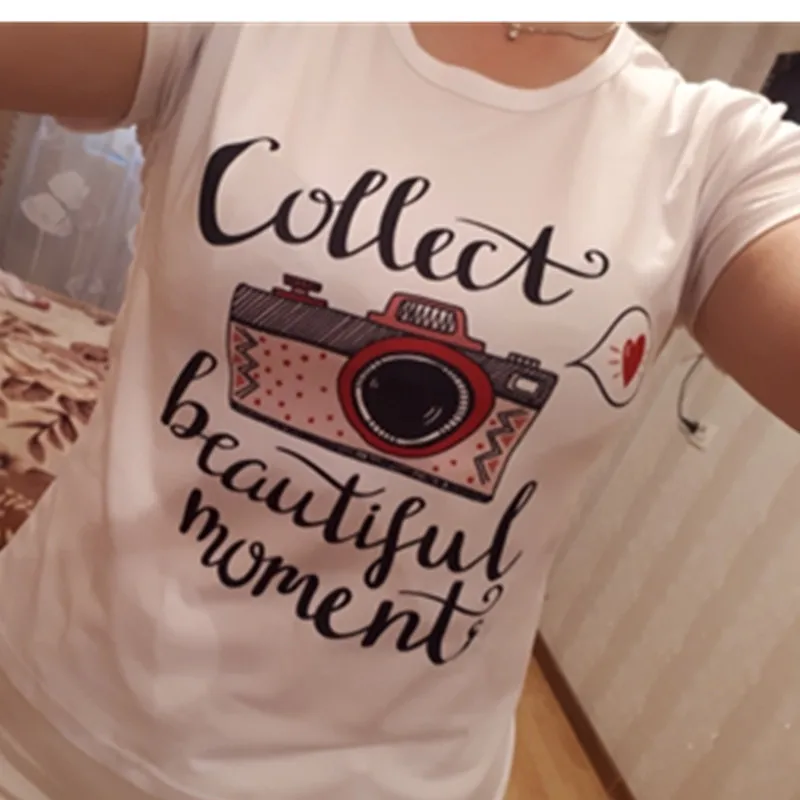 Home > Women T-shirt > vogue Letter camera Printed t shirt women Summer Tops Tees cotton Short Sleeve brand fashion round neck tshirt HH244